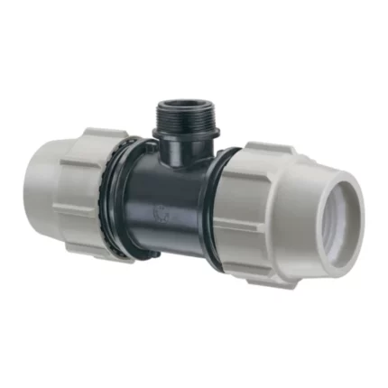 Ce té à compression 3 voies Plasson vous permet de créer des dérivations simples et efficaces sur vos installations d'arrosage ou de distribution d'eau. Avec ses filetages femelle/femelle/femelle et son serrage extérieur à bague auto-butée, c'est une solution robuste et facile à installer, idéale po