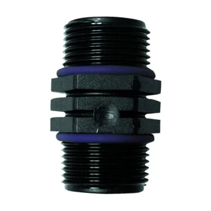 Connectez vos tuyaux d'arrosage en toute fiabilité avec ce manchon mâle/mâle en polypropylène renforcé. Doté d'un joint violet spécialement formulé pour résister aux acides, il assure une étanchéité durable pour vos installations d'irrigation, qu'elles soient agricoles, industrielles ou collectives.