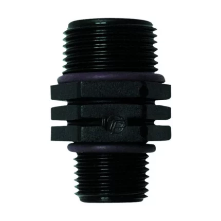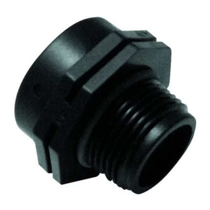 Raccord de réduction mâle/femelle robuste et fiable pour vos systèmes d'irrigation. Conçu pour relier deux tuyaux ou gaines sans compromis sur la durabilité, ce raccord à visser en polypropylène noir supporte les conditions extérieures les plus exigeantes grâce à sa résistance aux UV et son joint vi