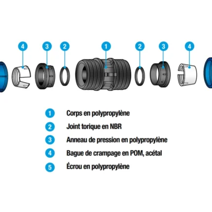 Coude fileté à compression FM Norma pour tubes PEHD, pression 6‑16 bars. Montage rapide et étanchéité parfaite.