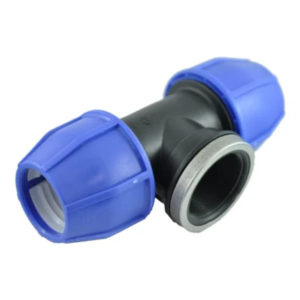 Raccord en té taraudé Norma pour tubes PEHD, conçu pour haute pression, montage rapide et étanchéité fiable.