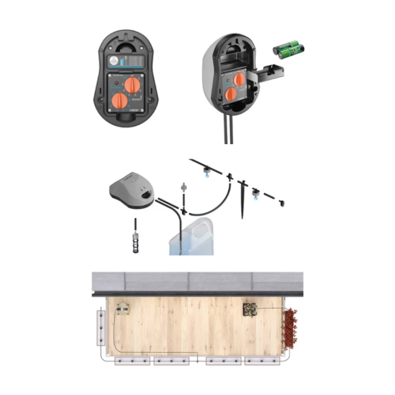 Ce kit est conçu pour fonctionner de manière totalement autonome. Installez le programmateur-pompe solaire en hauteur ou sur un mur, plongez le filtre d’aspiration dans votre réservoir d’eau, puis distribuez le tuyau capillaire parmi vos plantes en pot, jardinières ou massifs. Réglez simplement les deux manivelles pour définir à quelle fréquence et en quelle quantité vous souhaitez arroser. La pompe se met en marche automatiquement selon votre programmation, sans besoin de prise électrique ni de source d’eau courante. Parfait pour les terrasses, balcons et petits jardins.