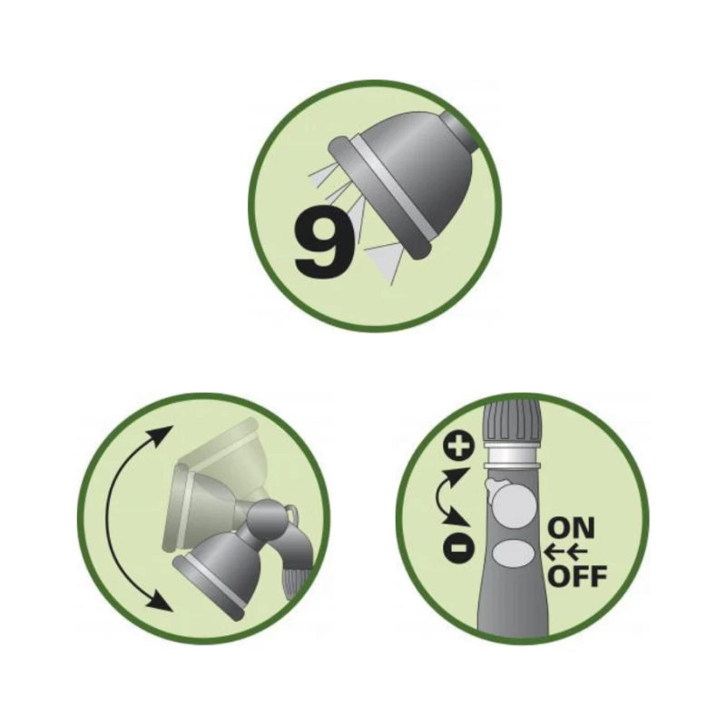 Idéale pour arroser vos massifs floraux, plantes grimpantes, suspensions et toitures végétalisées sans avoir à vous contorsionner entre les plantations. La longueur télescopique vous offre une portée étendue, tandis que la tête orientable et le réglage des 9 jets vous garantissent une précision optimale, adaptée à chaque type de plante et selon vos besoins du moment.