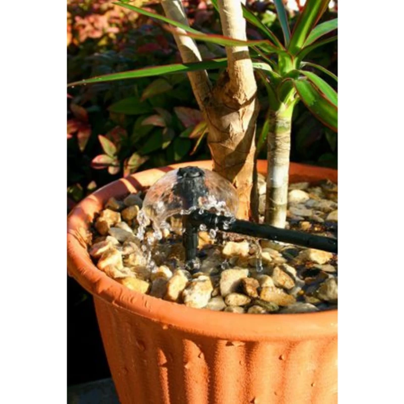 Installez le Mini Bubbler directement dans le sol ou sur le bord d’un pot en connectant sa prise latérale à votre système d’irrigation. Le réglage du débit se fait simplement en tournant le chapeau supérieur : pas besoin d’outil, vous contrôlez l’arrosage de 0 à 100 L/h selon les besoins de vos plantes. La projection 360° en forme d’ombrelle garantit une humidification douce et régulière autour des racines, sans mouiller le feuillage. Grâce à sa faible hauteur et son design compact, il reste discret une fois en place.