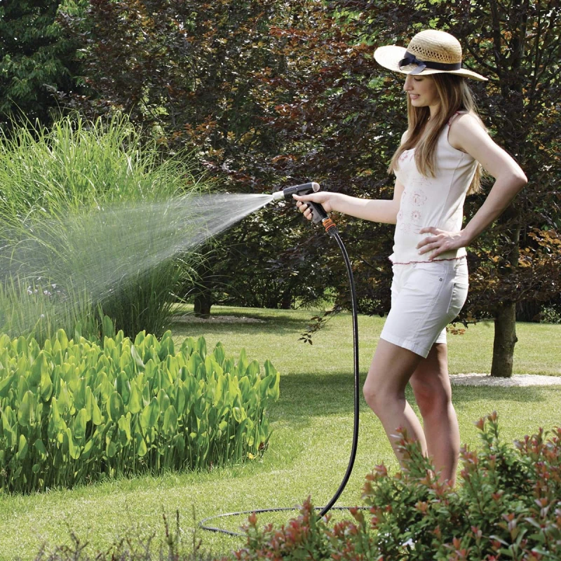 Un pistolet d'arrosage pensé pour le confort d'usage au quotidien. Sa poignée anatomique caoutchoutée épouse parfaitement votre main, même mouillée, tandis que le système de réglage intuitif vous permet de maîtriser débit et jet d'une seule main. Idéal pour tous vos travaux d'arrosage, du jet concen