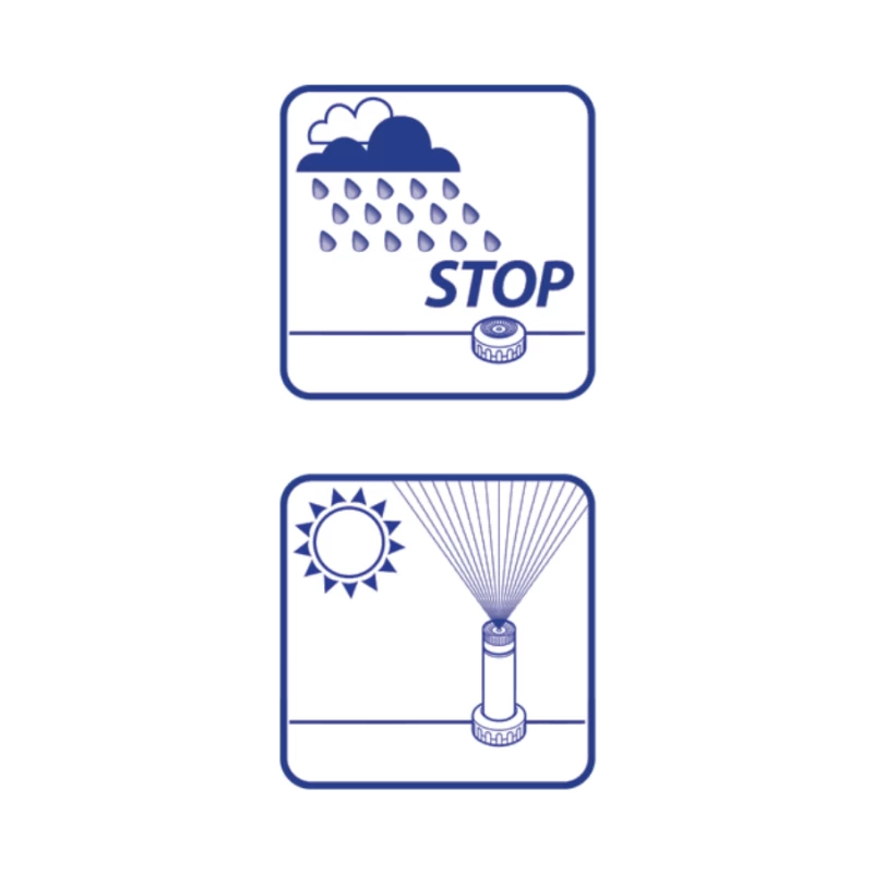 Placez votre pluviomètre Rain-Sensor dans une zone dégagée et bien exposée à la pluie, puis raccordez-le simplement par câble à votre programmateur d’arrosage. Le piquet fourni évite que les feuilles ne s’accumulent sur le capteur, garantissant un fonctionnement optimal en toutes saisons. Dès que 5 mm de pluie sont détectés, le système suspend automatiquement l’arrosage programmé. Une fois l’eau évaporée, la reprise se fait instantanément — fini les arrosages inutiles par mauvais temps !