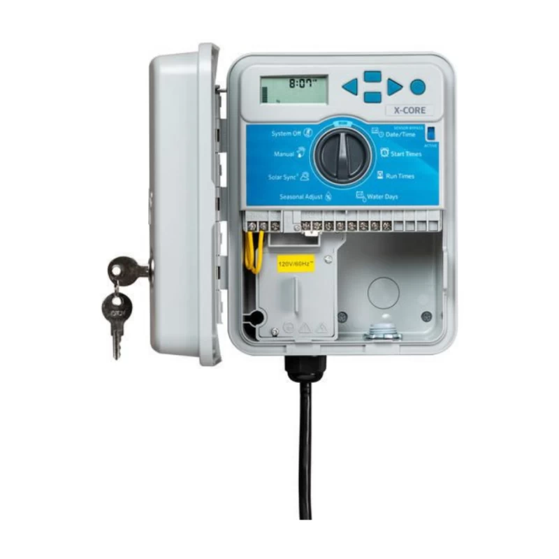 Le programmateur X-Core s’adapte à tous les jardins résidentiels. Son interface intuitive permet une mise en place en quelques minutes sans connaissance particulière. Associez-le à la sonde Solar Sync pour transformer votre système en programmateur intelligent : la sonde ajuste automatiquement les durées d’arrosage selon la pluie, la température et l’ensoleillement pour une économie d’eau garantie. Pour plus de confort, activez l’irrigation à distance grâce aux télécommandes sans fil Roam compatibles. Un entretien et une maintenance simples assurent une fiabilité durable de votre installation.