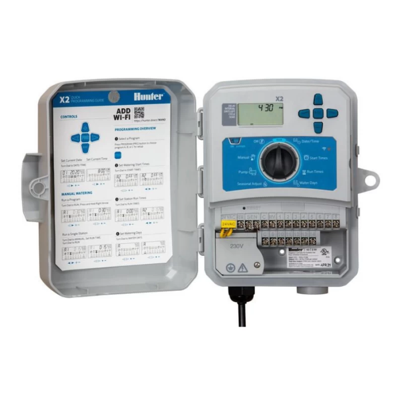 Le Hunter X2 est un programmateur d’arrosage professionnel qui allie la fiabilité de la gamme X-Core à des fonctionnalités nouvelle génération. Pilotez votre arrosage à distance via Wi-Fi et Hydrawise®, optimisez vos consommations d’eau grâce à l’ajustement automatique selon les données météo locales, et gérez facilement jusqu’à 14 voies selon le modèle choisi.